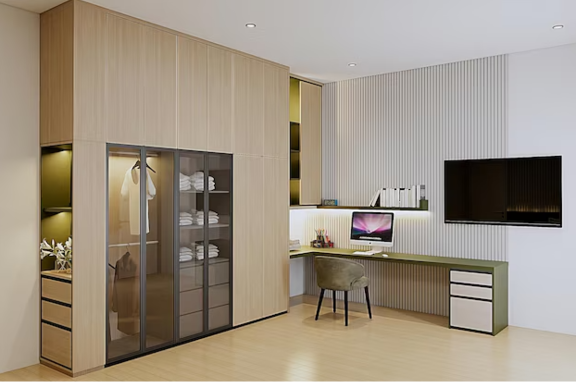 Storage planning is at the core of a good wardrobe design. Compartments for clothing, accessories, footwear, and seasonal items help maintain a clutter-free environment. Good lighting enhances the experience, making the wardrobe feel inviting and easy to use. For those who enjoy premium interiors, features like soft-close drawers, glass shelves, and premium finishes add a touch of sophistication.